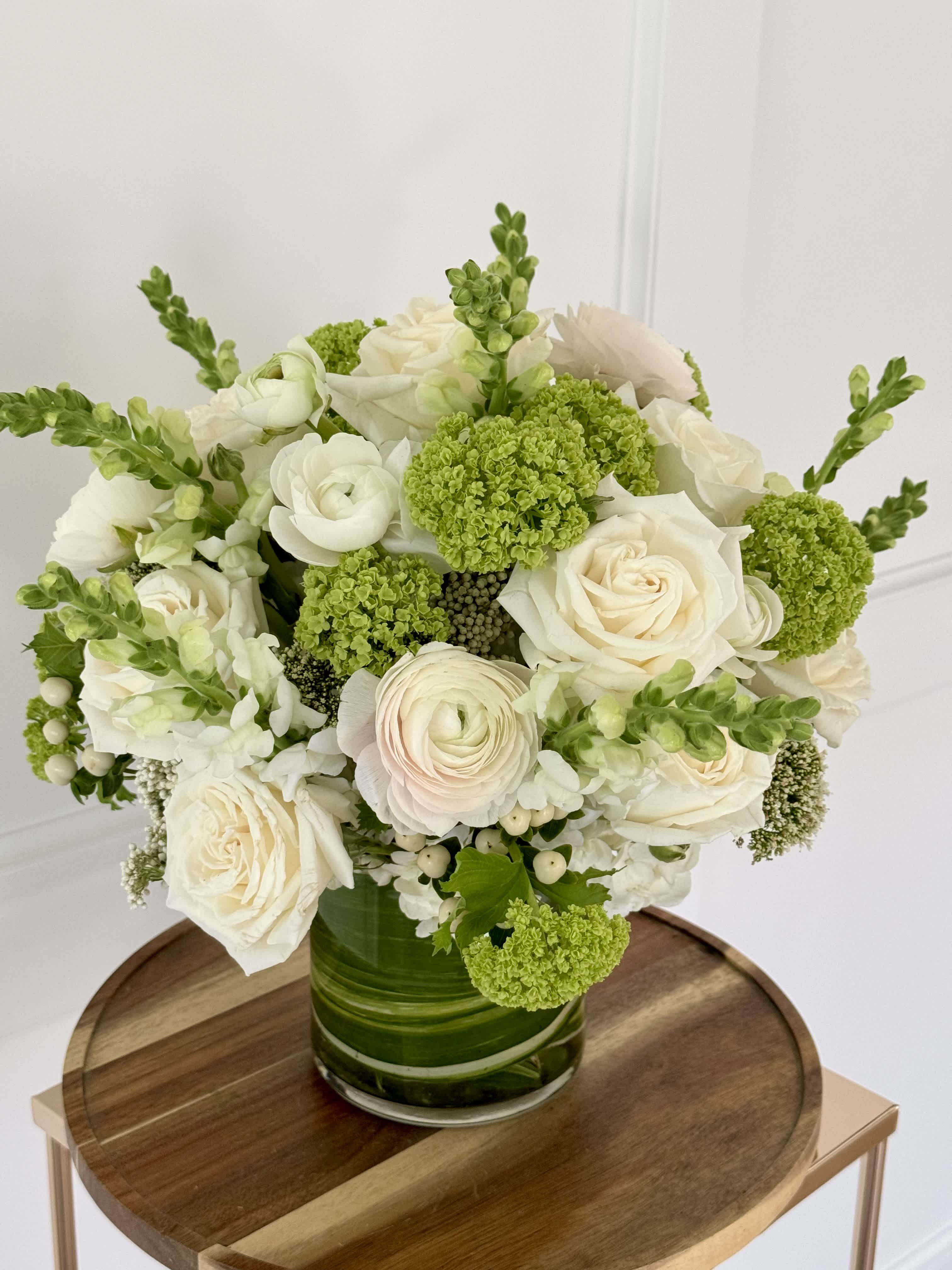 A stunning mix of neutrals and greenery. Perfect for any occasion.